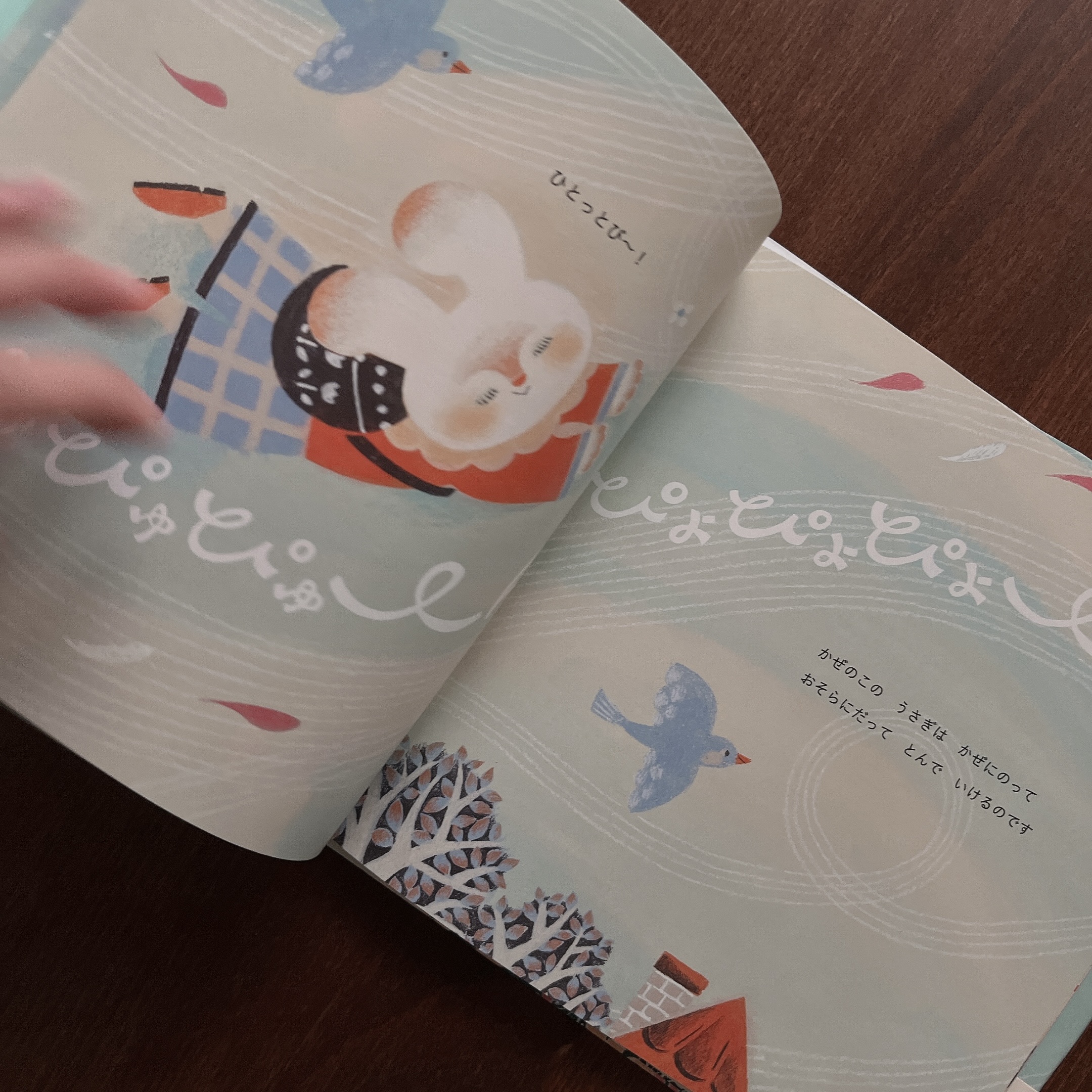 小兔子皮普是個風之子,他最喜歡在舒服的風中,「ぴゅぴゅぴゅ~ん♪」的隨風飄行。這天,他要去和最喜歡的朋友見面,就乘著風,飛越了好多好多的地方。這是一本充滿夢幻色彩、輕盈感的繪本,跟著皮普一起飛,會覺得世界都變得好溫柔、好輕快,讀完心裡會暖暖的,就像被微風輕輕吹拂一樣舒服。